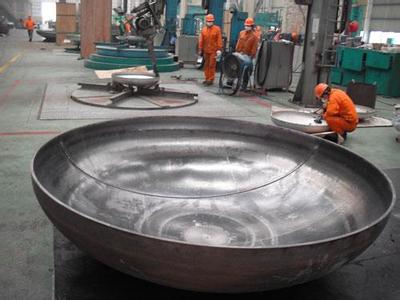 橢圓封頭的力學(xué)性能僅次于半球封頭,但優(yōu)于碟形封 頭。由于橢圓封頭的深度介于半球形和碟形封頭之間,對沖壓設(shè)備及模具的要求、制造難度亦介于兩者之間,即比半球封頭容易,比碟形封頭困難。近年來由于采用 旋壓制造工藝,為制造大直徑橢圓形封頭帶來了方便。